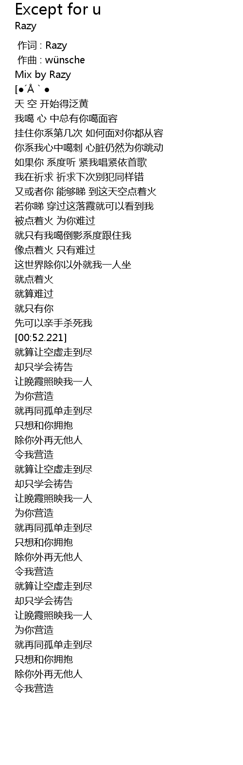 | [01:53.975] | chú nǐ wài zài wú tā rén |
