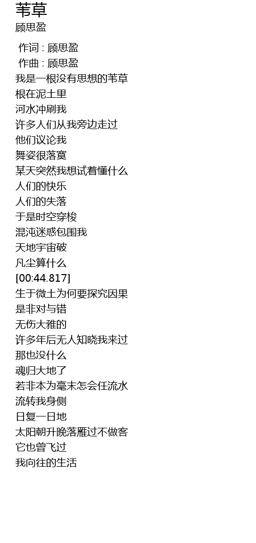 | [00:00.000] | 作词 : 顾思盈 |