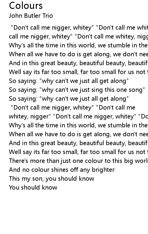 Instead of always saying: [Chorus] "Don't call me nigger, whitey" "Don't call me whitey, nigger" "Don't call me nigger, whitey" "Don't call me whitey, nigger" |