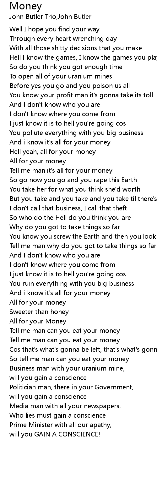 Tell me man can you eat your money |