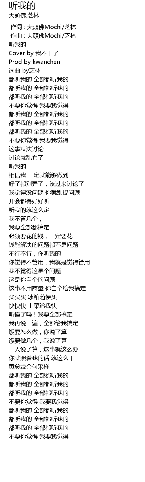 | [02:01.603] | dōu tīng wǒ de quán bù dōu tīng wǒ de |
