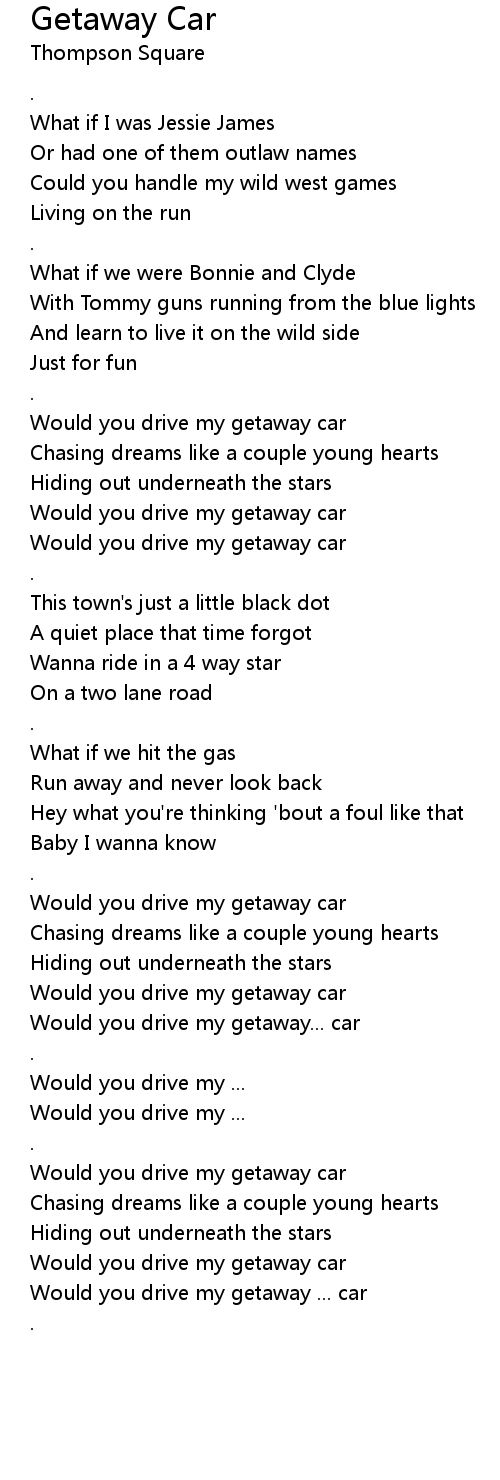 Would you drive my getaway... car |