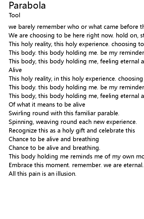 | This body, this body holding me, feeling eternal all this pain is an illusion. | |