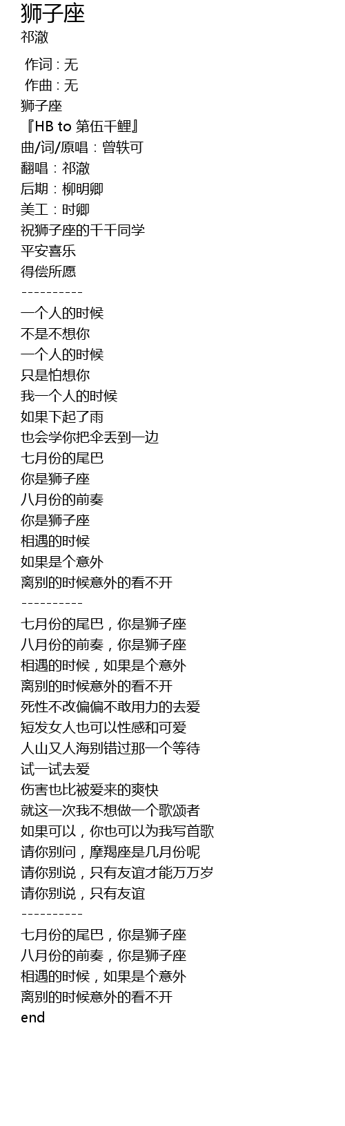 | [02:43.428] | 七月份的尾巴,你是狮子座 |