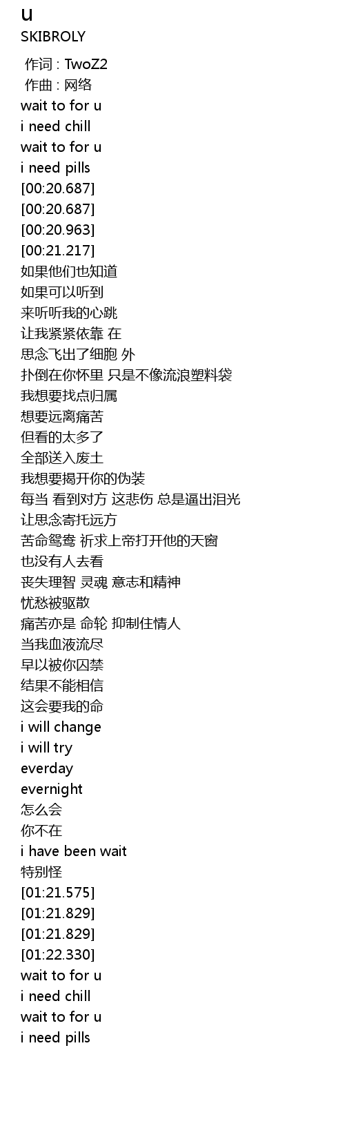 | [00:00.000] | 作词 : TwoZ2 |