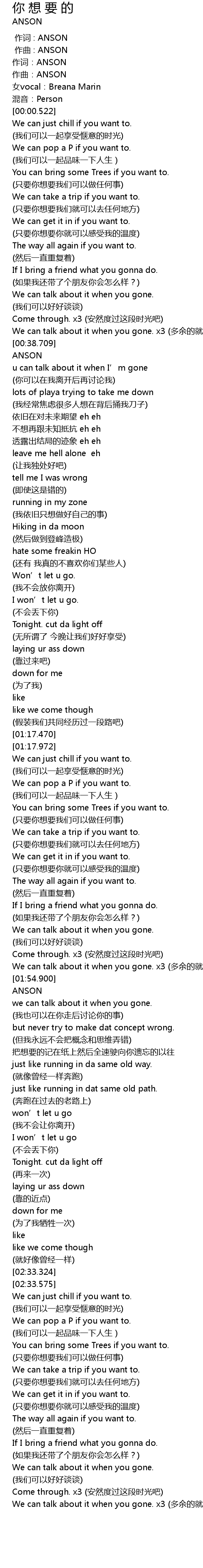 | [02:43.616] | zhǐ yào nǐ xiǎng yào wǒ men jiù kě yǐ qù rèn hé dì fāng |
