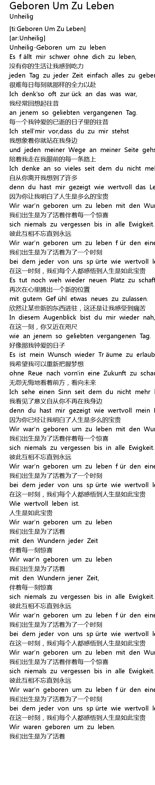 | [00:02.682] | UnheiligGeboren um zu leben |