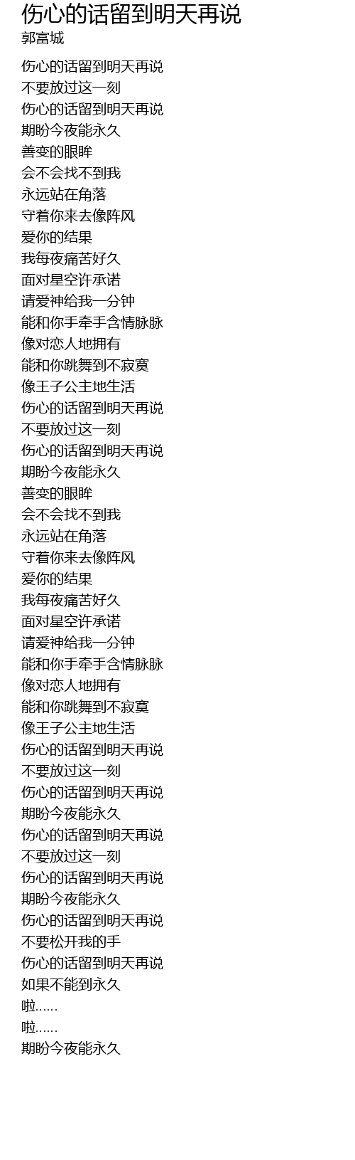 | [03:53.34] | 伤心的话留到明天再说 |