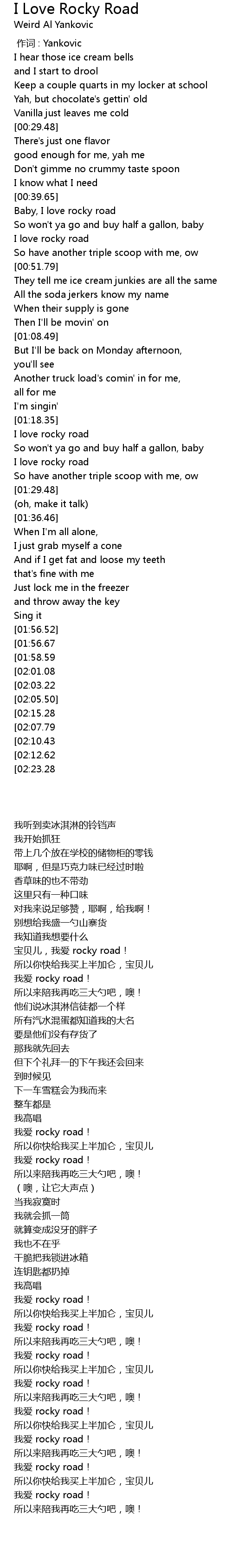| [00:53.30] | They tell me ice cream junkies are all the same |