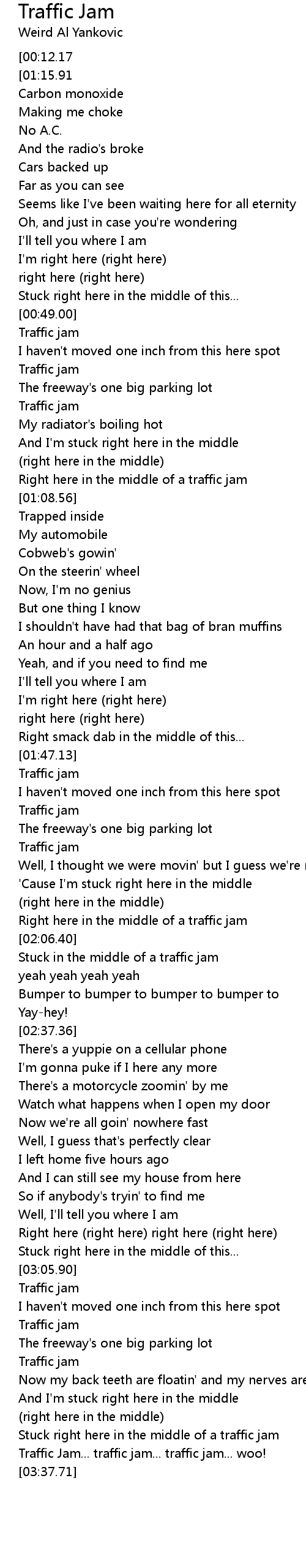 Stuck right here in the middle of a traffic jam |