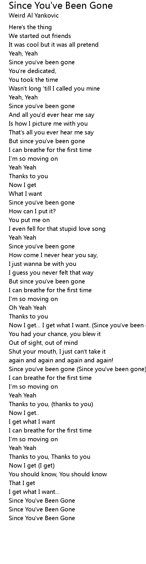 Now I get... I get what I want..(Since you've been gone) |