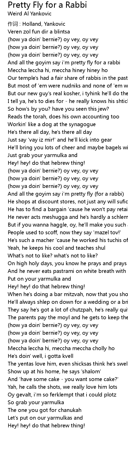 | And all the goyim say i' m pretty fly for a rabbi | |