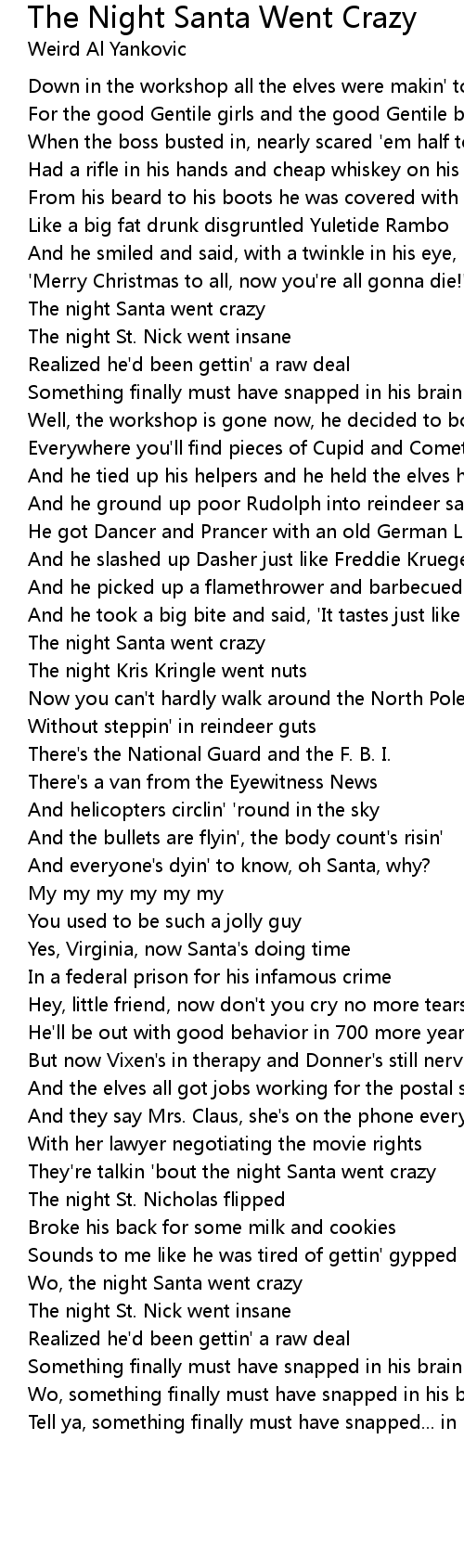 Like a big fat drunk disgruntled Yuletide Rambo |