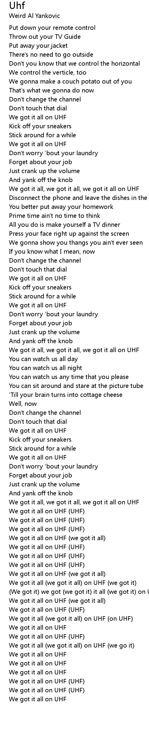 We got it all, we got it all, we got it all on UHF |