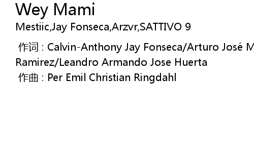 | [00:00.00-1] | 作词 : Calvin-Anthony Jay Fonseca/Arturo José Moreno Ramirez/Leandro Armando Jose Huerta |