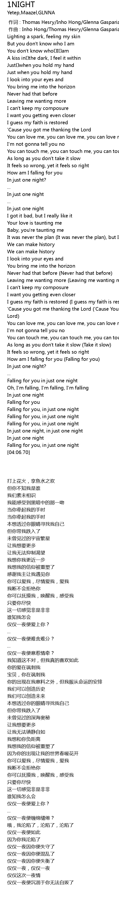 | [04:02.15] | Falling for you, in just one night |