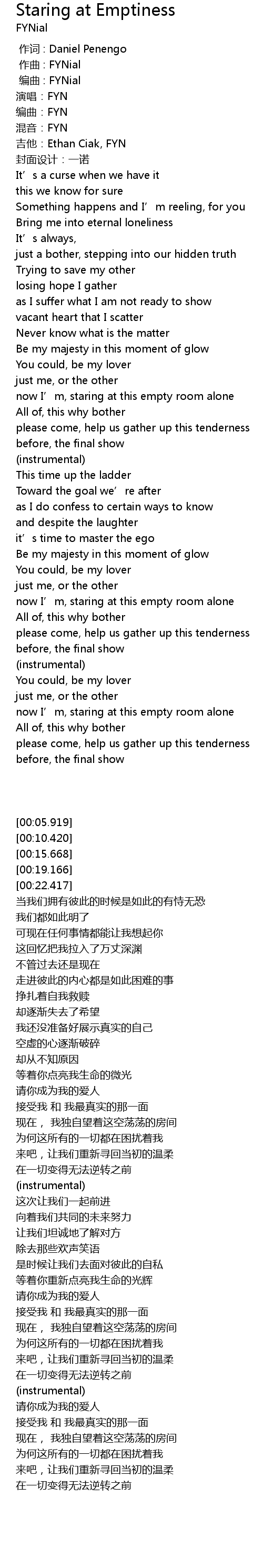 | [00:19.166] | 编曲:FYN |