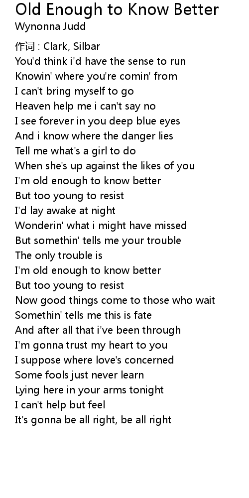 | Song | Old Enough to Know Better |
