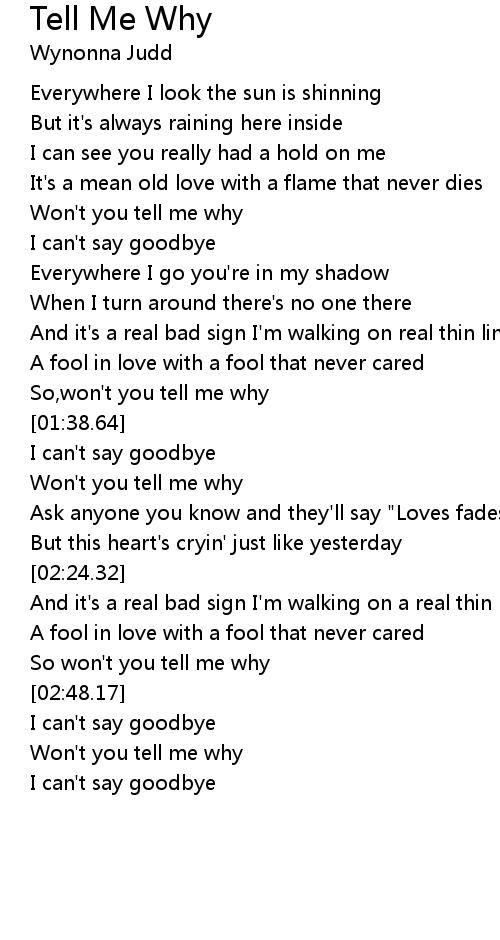 Won't you tell me why |