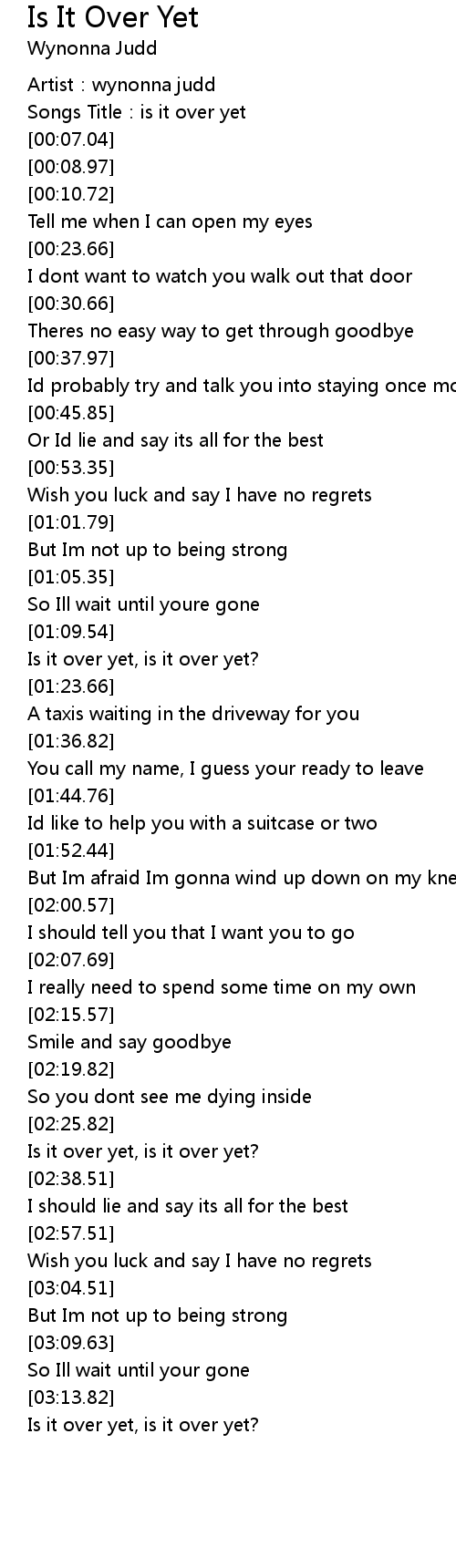 | [00:03.97] | Songs Title: is it over yet |