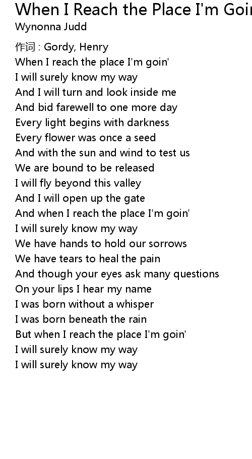 | And when I reach the place I' m goin' | |