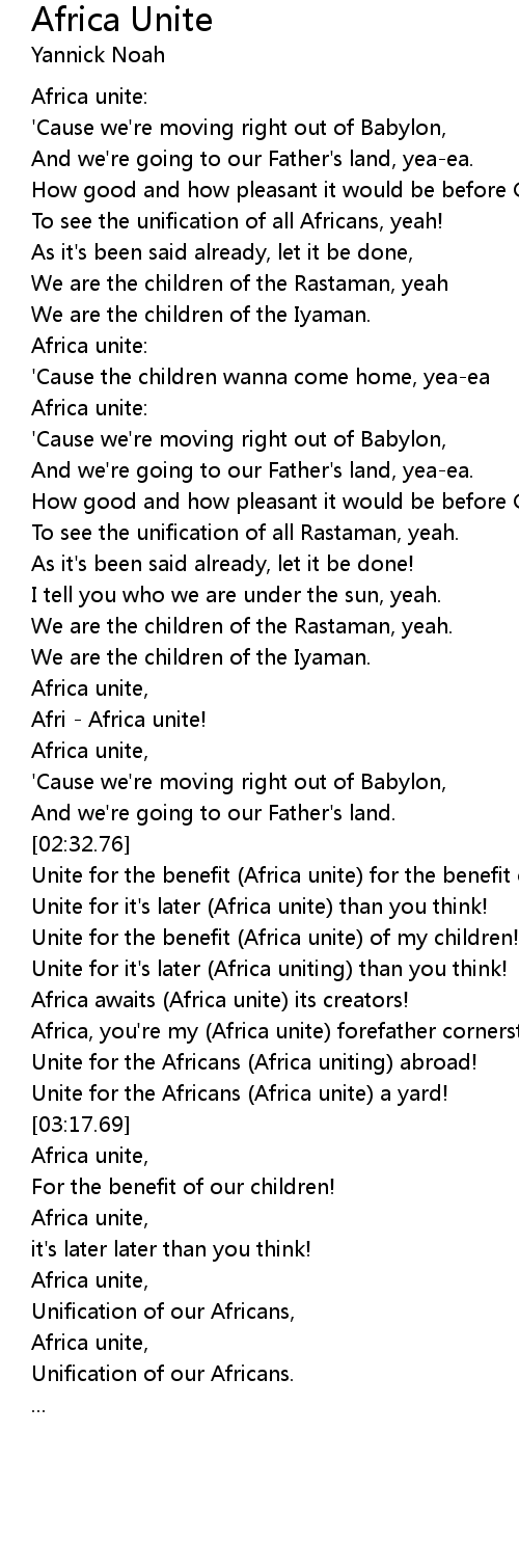 Unite for the benefit (Africa unite) for the benefit of your people! |