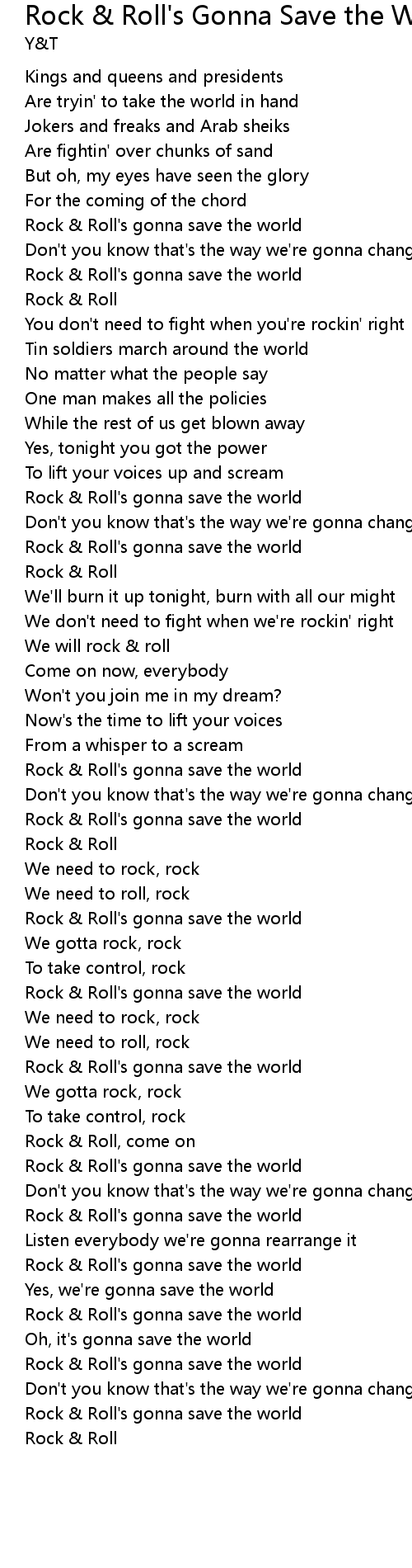 Rock & Roll's gonna save the world |