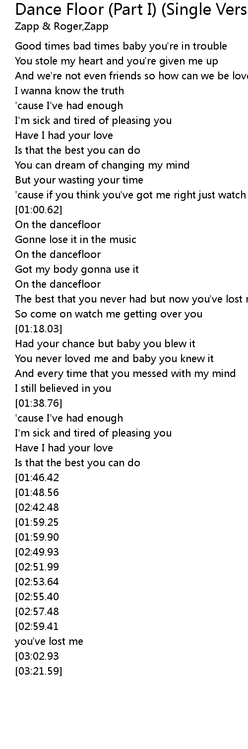 [03:05.69][02:49.93][02:35.40][02:16.13][02:00.45] On the dancefloor