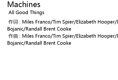 | [00:00.00-1] | zuò cí : Miles Franco Tim Spier Elizabeth Hooper Dan Murphy Andrew Bojanic Randall Brent Cooke |
