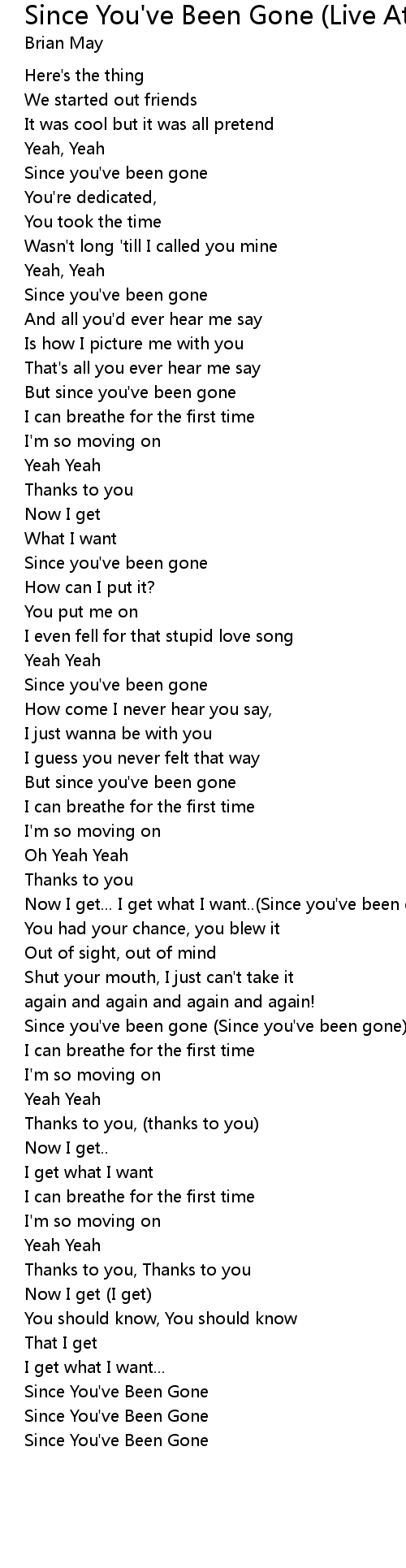 Since You've Been Gone (Live At Brixton Academy) Lyrics