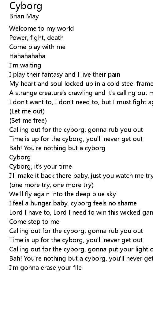Calling out for the cyborg, gonna put your light out |