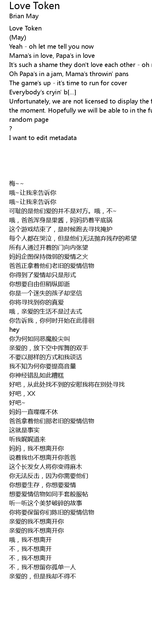 | Unfortunately, we are not licensed to display the full lyrics for this song at the moment. Hopefully we will be able to in the future. Until then, how about a | |