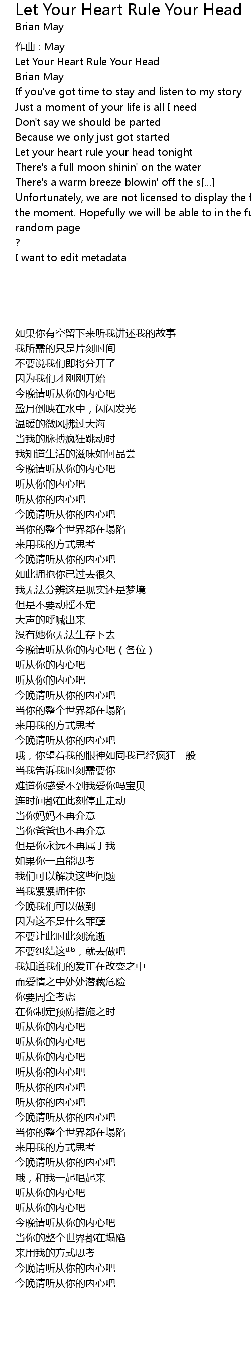 | Let your heart rule your head tonight | |