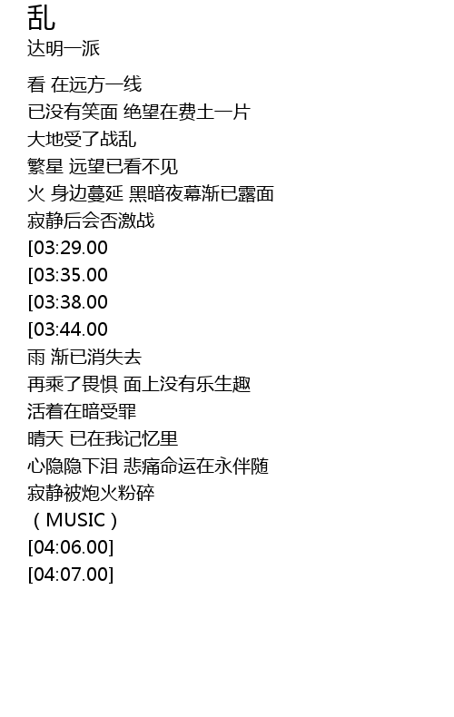 | [03:56.00][03:38.00][03:19.00][01:48.00] | zhan huo zhong nan fu zai |