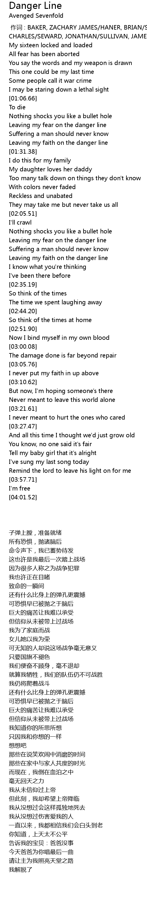 | [00:00.00] | 作词 : BAKER, ZACHARY JAMES/HANER, BRIAN/SANDERS, MATTHEW CHARLES/SEWARD, JONATHAN/SULLIVAN, JAMES |