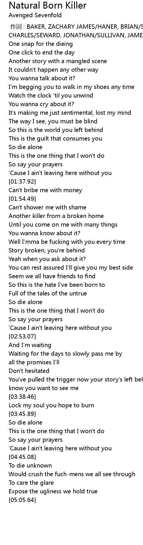 | [03:30.88] | You've pulled the trigger now your story's left behind |