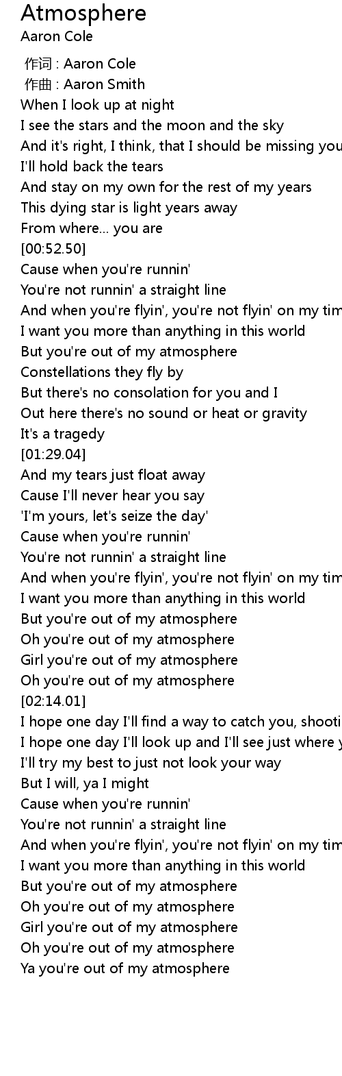| [02:07.48] | Girl you' re out of my atmosphere |