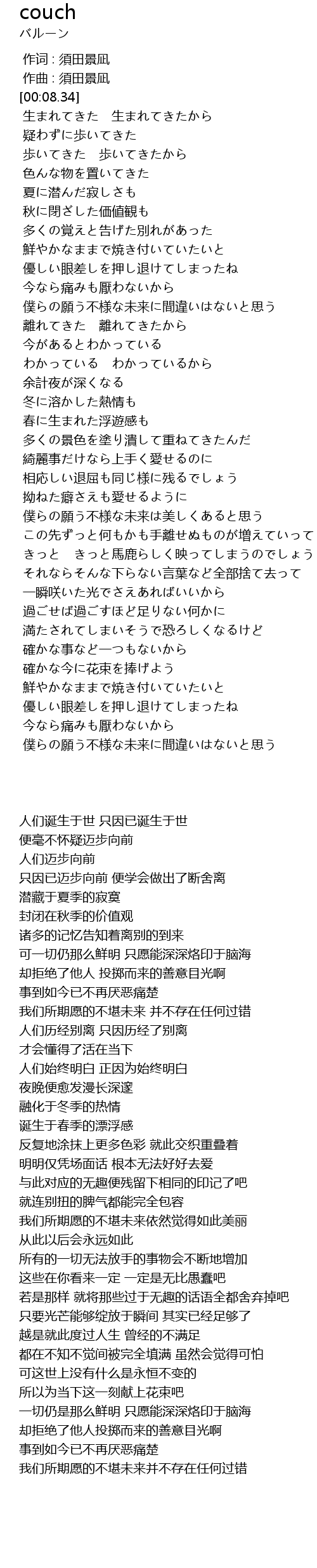 | [02:16.99] | この先ずっと何もかも手離せぬものが増えていって |