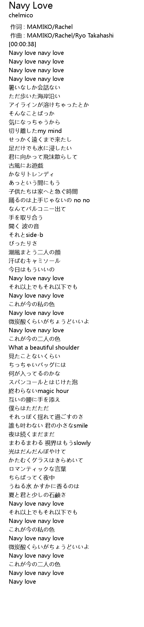 | [00:00.00] | 作词 : MAMIKO/Rachel |