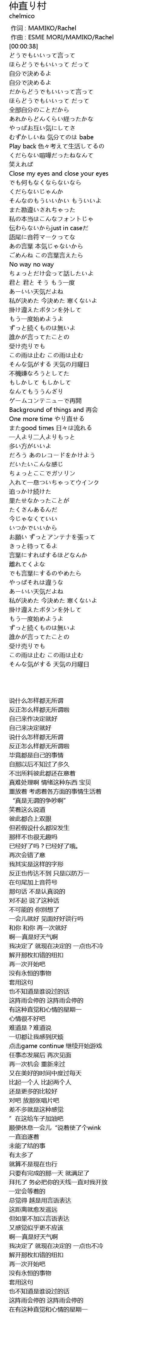 | [00:00.00] | zuò cí : MAMIKO Rachel |