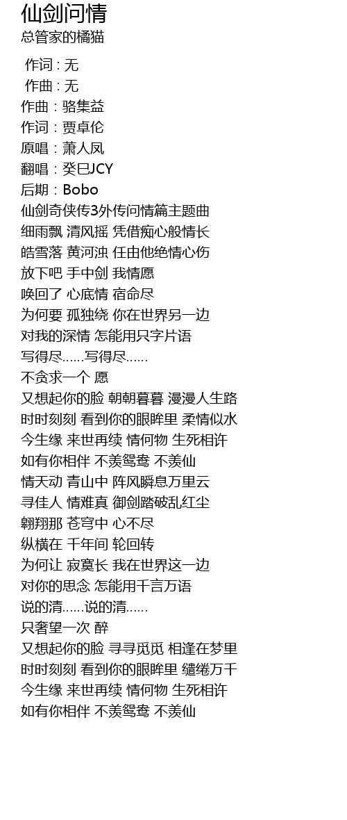 | [00:27.310] | xiān jiàn qí xiá chuán 3 wài zhuàn wèn qíng piān zhǔ tí qū |