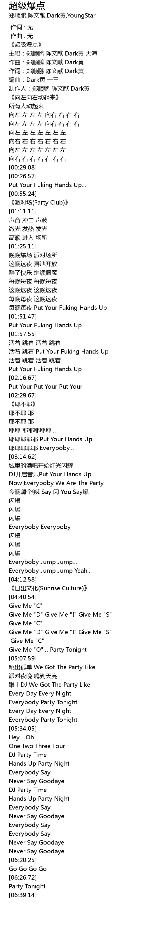 | [02:06.23] | 活着 跳着 Put Your Fuking Hands Up |