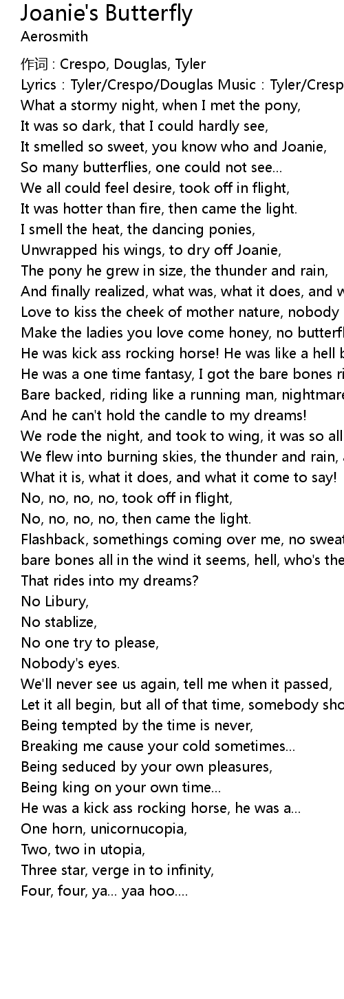 | Lyrics:Tyler/Crespo/Douglas Music:Tyler/Crespo/Douglas | |