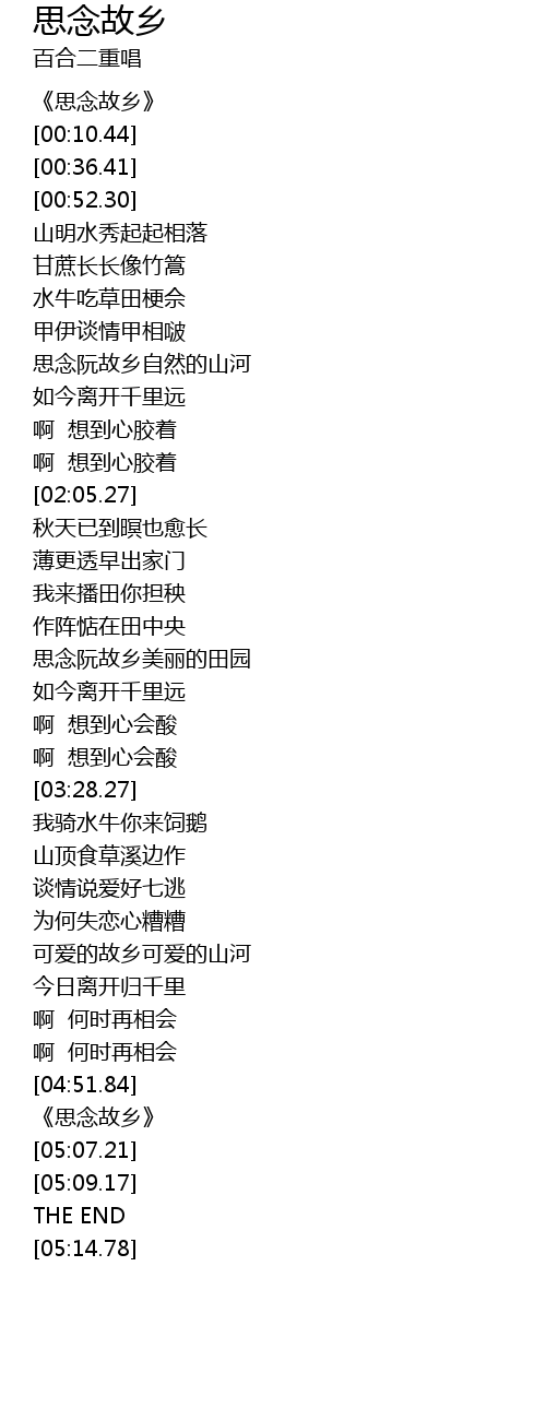 | [04:53.73] | 《思念故乡》 |