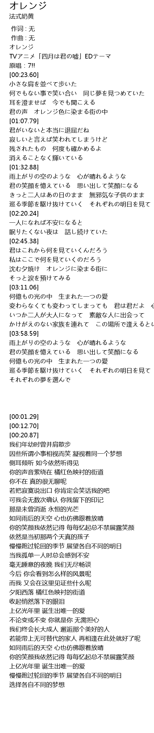 | [00:01.29] | オレンジ |