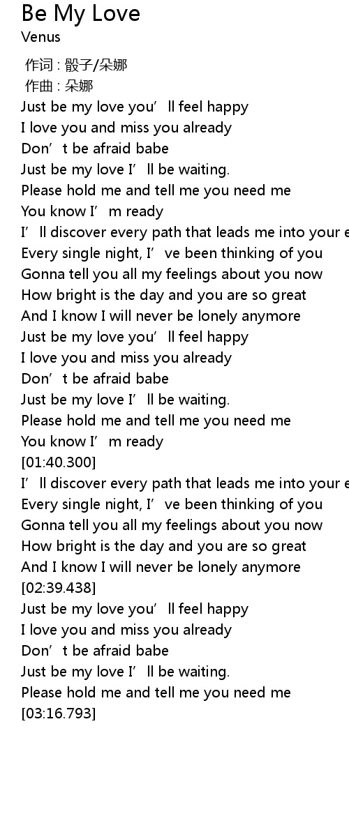| [03:01.094] | Just be my love I' ll be waiting. |