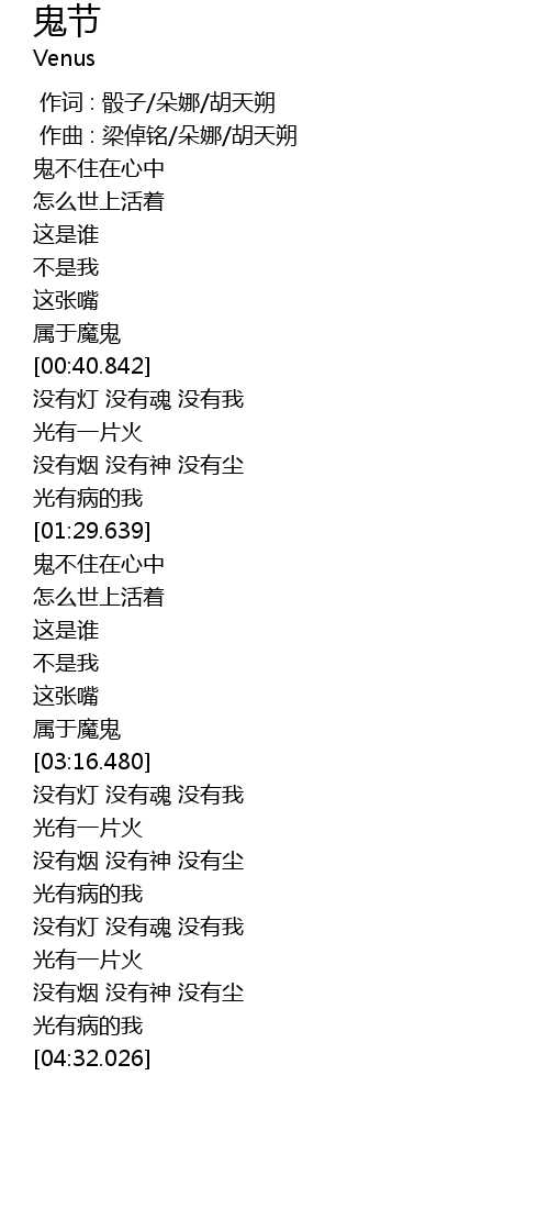 | [03:42.524] | méi yǒu dēng méi yǒu hún méi yǒu wǒ |