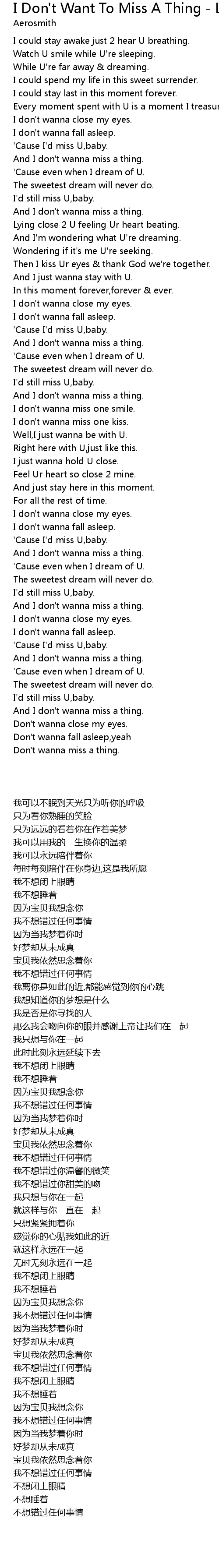 And I don't wanna miss a thing. |