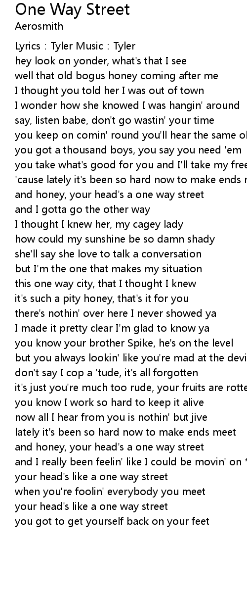 | and honey, your head' s a one way street | |