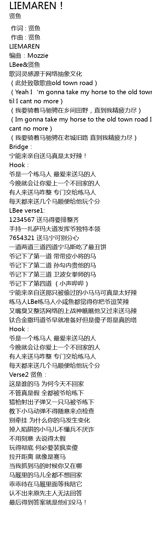 | [00:03.187] | (此处致敬歌曲old town road) |